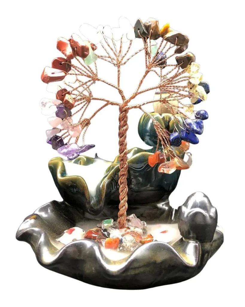 - Árvore de cristal de chakra: o suporte de incenso de refluxo possui sete pedras de chacra vibrantes que representam resp…