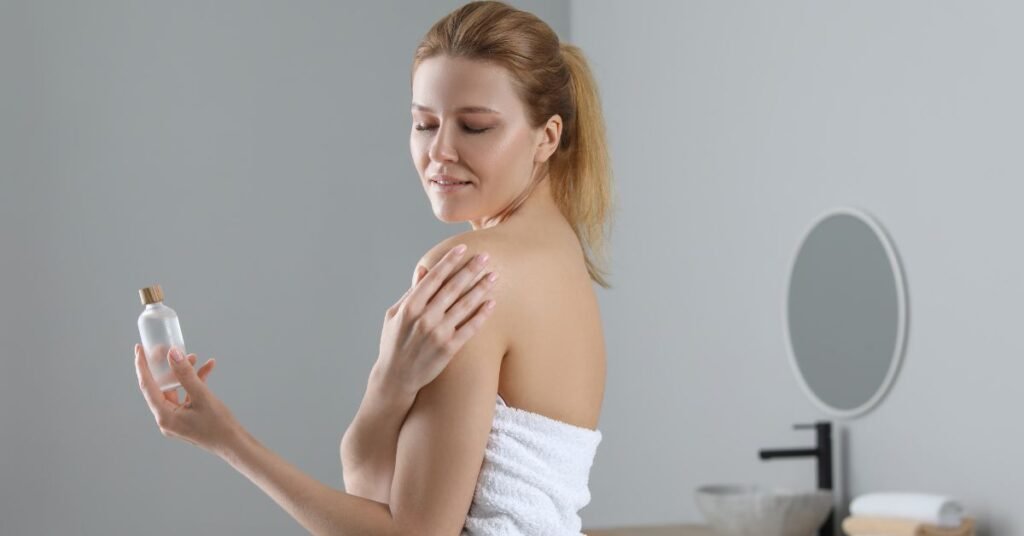 mulher passando óleo corporal caseiro